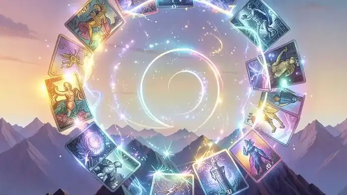 Расклад Таро «спираль» на горы раскрывает путь к цели через символику горных вершин и спиральных уровней, позволяя увидеть скрытые тенденции в работе, любви и здоровье.