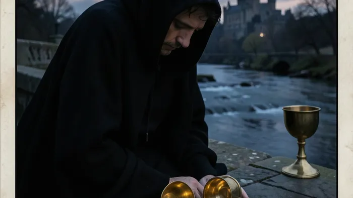 В классической колоде Райдера-Уэйта на карте Пятерка Кубков изображена фигура в черном плаще. Она смотрит на три опрокинутых кубка у своих ног. Два полных кубка стоят позади, но человек их не замечает. Река и мрачный замок на заднем плане довершают пейзаж меланхолии. Этот визуальный ряд — не просто иллюстрация горя. Это точная картография состояния, знакомого каждому: когда боль от потери настолько ослепляет, что мы перестаем видеть то, что у нас еще есть.