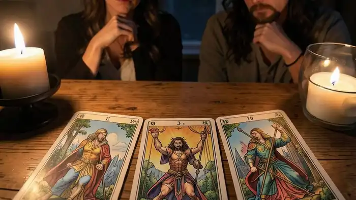 Пример: карта «Влюбленные» в этой позиции часто говорит о сильной эмоциональной связи, но может скрывать конфликтные элементы, если карта вытянута в обратном положении.