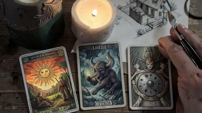 Зачем именно три? Потому что строительство дома — это не одно действие. Это три стадии: воля, препятствие, реальность. Вы не строите дом — вы строите себя. И каждая карта показывает вашу роль на каждом уровне.