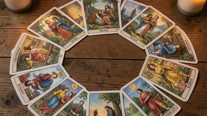 Расклад Таро «годовой на 12 месяцев» на расставание раскрывает, как каждый месяц будет влиять на ваше сердце после разрыва, помогая планировать дальнейшие шаги.