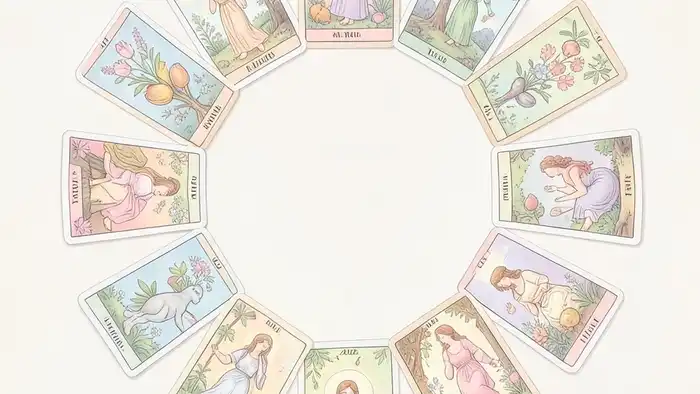 - Вытяните 12 карт, размещая их по кругу от января к декабрю.