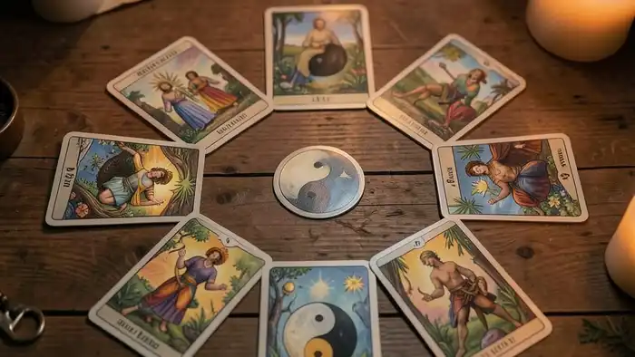 Расклад Таро «инь-ян» на призвание помогает увидеть скрытый баланс между внутренними силами и внешними возможностями, определяя истинное предназначение.