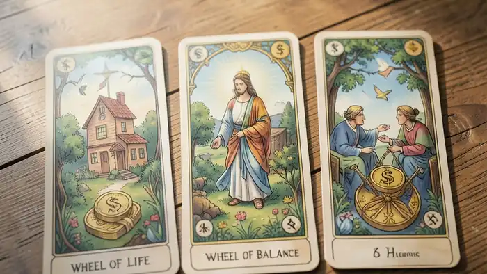 Традиция связывает колёсо баланса с астрологическим знаком Весов, символизирующим гармонию. По Юнгу, арканы Таро отражают архетипы коллективного бессознательного, а их сочетание в раскладе образует динамическую карту личного развития. В современном тарологическом сообществе расклад «Колесо баланса жизни» считается универсальным инструментом для оценки любой крупной инвестиции.
