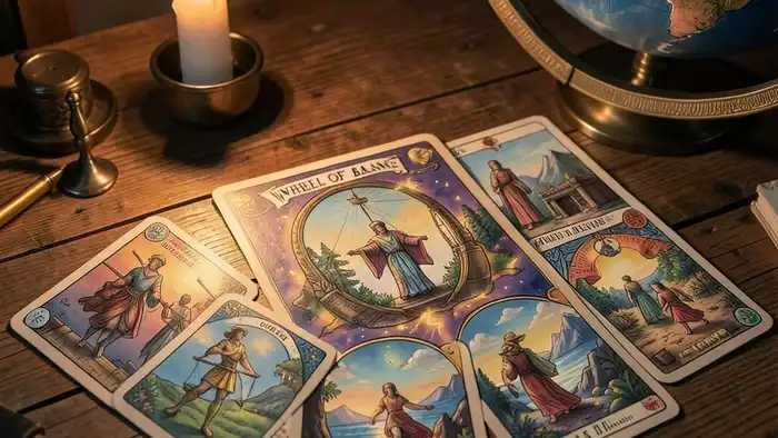 Расклад «колесо баланса жизни» построен вокруг идеи, что жизнь – это вращающееся колесо, где каждый сектор отвечает за определённый аспект бытия: работа, семья, здоровье, финансы, духовность и т.д. При переезде за границу эти сферы находятся в особом напряжении, и карта‑показатель каждой позиции раскрывает, насколько они находятся в гармонии или дисбалансе.