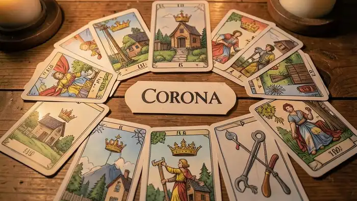 Слово «корона» в Таро символизирует вершину, достижение, завершённый цикл. По традиции Уэйта, карта «Корона» (в виде Папесы в старших арканах) ассоциируется с духовным заверше��ием и признанием. По Юнговской психологии, корона олицетворяет интеграцию сознания и бессознательного, что в контексте ремонта означает согласование практических действий с внутренними желаниями.