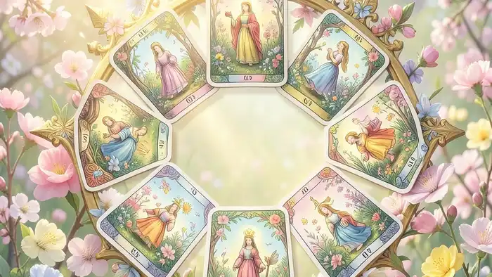 «Таро — зеркало души, а расклад «корона» — зеркало сезона. Внимательно смотри, и ты увидишь, как весна меняет твою жизнь». — Артур Уэйт