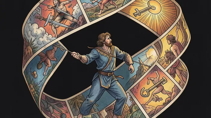 - Точка переворота. Ключ к разрыву цикла. Что может перевернуть всю систему, как ленту Мёбиуса, и вывести на новую плоскость? Это совет карт, ресурс или изменение взгляда. Например, Шут — начать с чистого листа, уйти; Император — установить жёсткие границы. Это звено, где можно разорвать петлю.