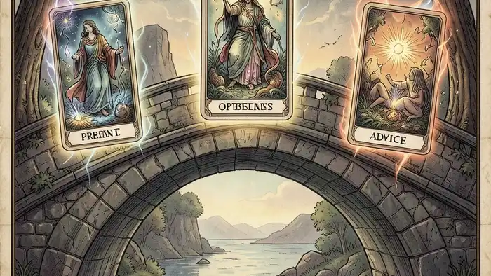 Я часто добавляю небольшую медитацию перед раскладом: закрыть глаза, сделать несколько глубоких вдохов и представить, как вы стоите на середине моста, глядя в обе стороны. Это помогает настроить сознание на восприятие символов.