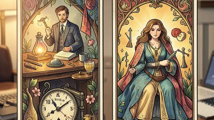 Расклад Таро «Он и Она» на смену работы – это инструмент, позволяющий увидеть не только внешние обстоятельства, но и внутренний диалог между «Он» (логическим, рациональным) и «Она» (интуитивным, эмоциональным). По теории Юнга такие полярности представляют собой анимус и анима, которые влияют на принятие решений. При смене работы важно понять, какие из этих сил доминируют сейчас и какие следует активировать.