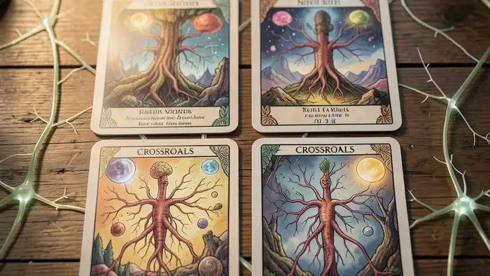 В традиции Уэйта, где каждый аркан имеет двойное значение – символическое и практическое – расклад «Перекресток» использует четыре аркана, каждый из которых отвечает за отдельный аспект нервного состояния. По теории Юнга, карты отражают архетипы, которые могут быть активированы в момент стресса, влияя на работу нервных цепей.