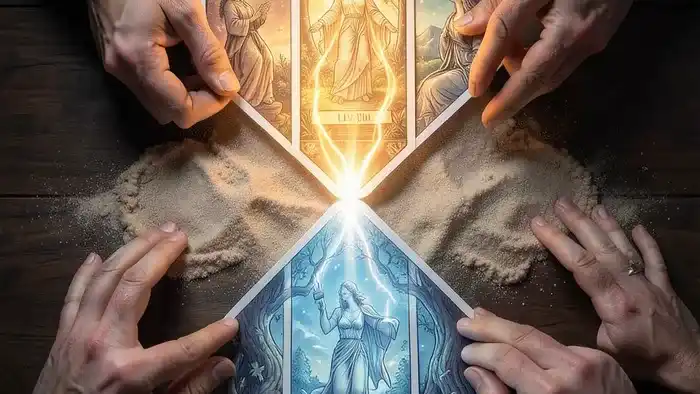 Предсказать будущее отношений — это все равно что пытаться угадать, куда свернет река, зная только ее русло. Можно строить догадки, но течение, подводные камни и новые притоки вносят свои коррективы. Большинство раскладов Таро предлагают статичную картинку: «что будет?». Но отношения — это процесс, диалог, постоянное движение. Именно поэтому для таких запросов существует особая, почти кинематографичная техника — расклад «Песочные часы».