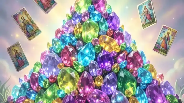 Расклад Таро «пирамида» на драгоценности помогает увидеть скрытые финансовые и эмоциональные ресурсы, а также понять, как использовать их в текущей ситуации.