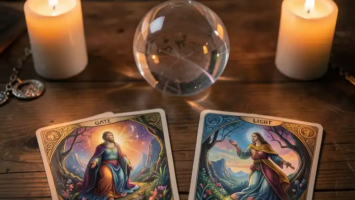 Вообразите перед собой массивные ворота из светлого камня. С каждым вдохом они открываются всё шире, а с выдохом вы выпускаете тревоги. После пяти циклов представьте, что через ворота поступает поток яркого света, который наполняет ваше тело. Затем откройте глаза и сразу же сделайте расклад.