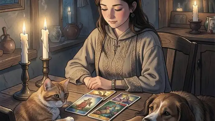 Если у вас есть собака, позвольте ей лежать рядом, но не мешать вам. Для кошек лучше использовать мягкую подушку и разместить её в месте, где они обычно отдыхают. Важно, чтобы питомец чувствовал себя комфортно, иначе карты могут отразить лишь его тревогу.