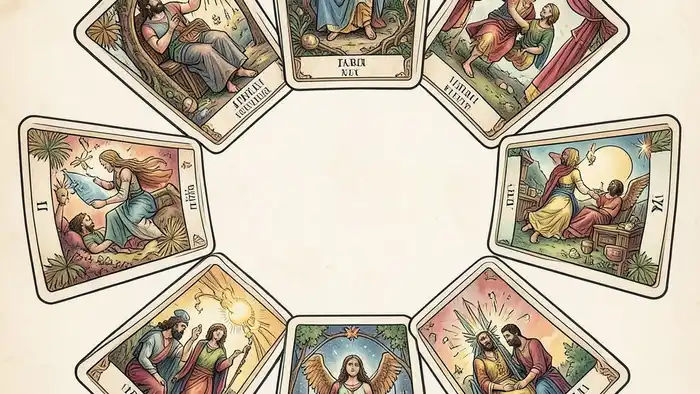 Упражнение «Круг свободы»: Сядьте в удобном месте, возьмите колоду, вытяните три карты и разместите их в виде треугольника. Спросите себя: «Какая из этих карт показывает, где я могу начать освобождение от зависимости?» Запишите ответ и сделайте один конкретный шаг в течение недели.