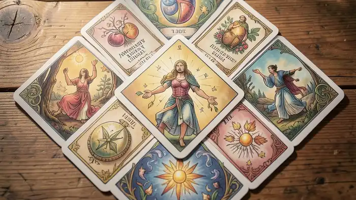 Однако, если вы чувствуете, что карта не «говорит» с вами, попробуйте пере‑перетасовать и заново. Иногда небольшая корректировка меняет весь смысл.