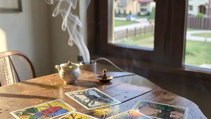 - Подготовка пространства. Выберите тихое место. Включите тёплый свет, можно — лаванду или сандал. Вы не проводите расклад в офисе или на кухне. Это требует уважения.