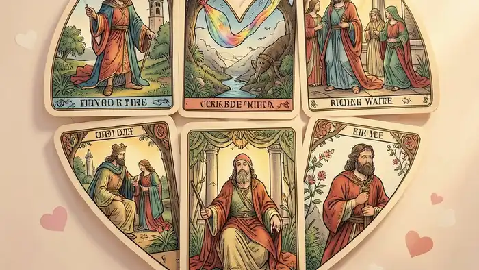 Пример: клиент получил Влюбленные в первой позиции. Это означало, что его сердце находится в состоянии гармонии, но требует внимания к эмоциональному балансу.