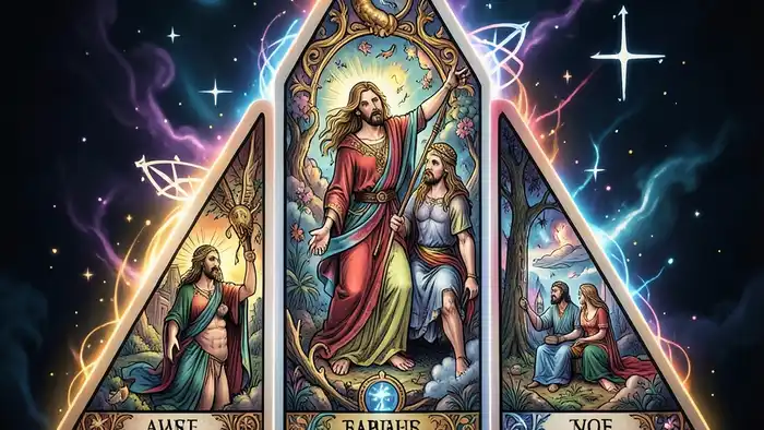 - Трёхугольный расклад раскрывает прошлое, настоящее и будущее в одном кадре.