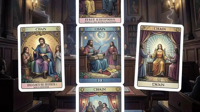 Расклад Таро «цепочка» на судебный иск о деньгах раскрывает скрытые силы и помогает выбрать стратегию победы в суде.