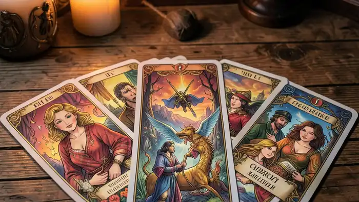 Сядьте удобно, закройте глаза и представьте, как свет из вашего сердца расширяется, соединяясь с энергией потенциального партнёра. Позвольте образу «веера» появиться в вашем воображении, где каждая карта — это перо, раскрывающее путь.