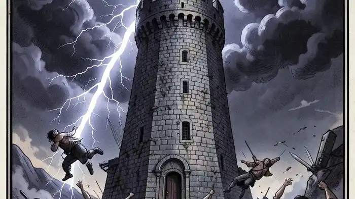 Башня символизирует резкое разрушение старых структур, внезапные перемены и возможность освобождения от ограничений. Это предвестник трансформации, а не просто катастрофы.