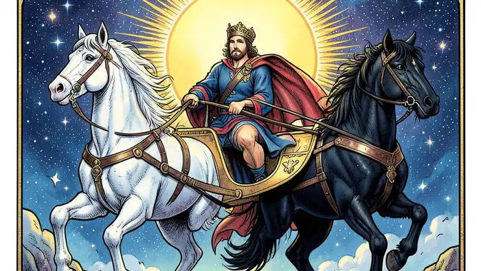 Тень и свет в образе — это двойные лошади, которые представляют наши скрытые желания и сознательные цели. Управление ими требует интеграции, а не подавления.