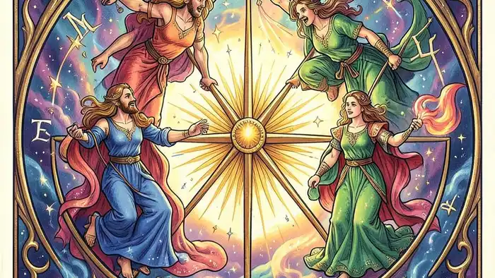 Колесо Фортуны архетип таро часто воспринимается как простая карта удачи, но её смысл гораздо глубже. По мнению Карла Юнга, архетипы — это коллективные образы, присутствующие в бессознательном каждого человека. Колесо Фортуны олицетворяет архетип «цикл», который проявляется в жизненных фазах, повторяющихся паттернах и судьбоносных решениях. В традиции Уэйта, где впервые была изображена современная версия карты, колеса крутятся под влиянием четырёх фигур — Сатурна, Солнца, Луны и Меркурия, каждая из которых несёт собственный смысловой заряд.