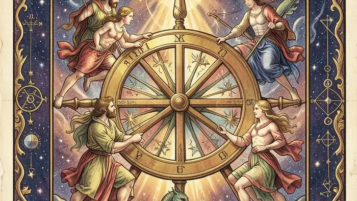 - Колесо Фортуны символизирует циклы судьбы и перемены.
