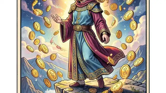 Шут символизирует начало финансового пути, готовность к риску и открытость к новым возможностям. Он подсказывает, что успех приходит к тем, кто действует смело, но с осознанностью.