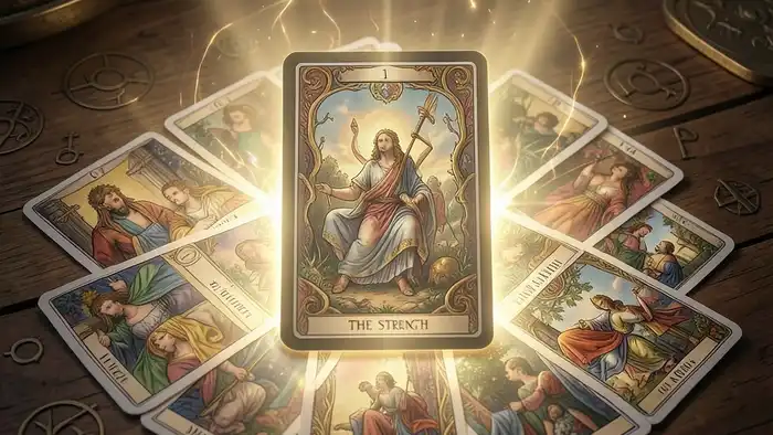 - Возьмите карту «Сила» из колоды, рассмотрите её детали.