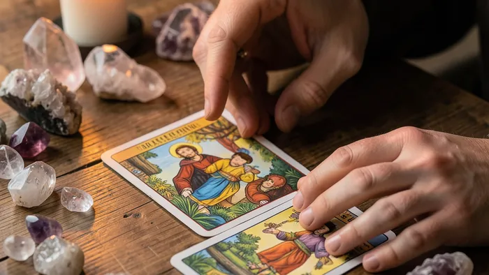 А вот для более сложных случаев, вроде диагностики здоровья в раскладе «Лента Мёбиуса», я всегда добавляю этап с кристаллами. Кварц или селенит, положенный на колоду на пару минут, работает как отличный энергетический «санитар».