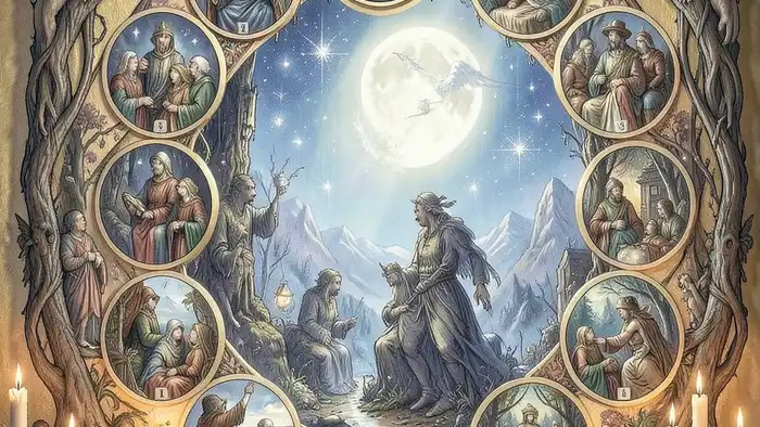 - Расклад 12 домов пошагово сопоставляет каждую из 78 карт Таро с астрологическим домом, создавая карту жизненных сфер от личности до наследия.