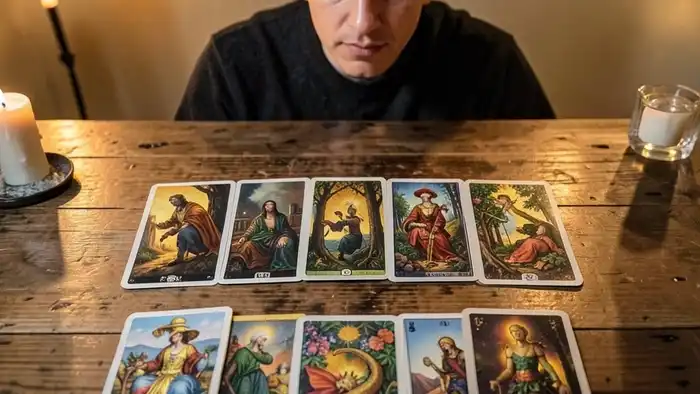 5. Разложите по позициям. Никогда не кладите карты «на глаз». Используйте визуальную схему: позиции 1–5 — слева направо в верхнем ряду; 6–10 — в нижнем. Это создает баланс. Всегда кладите карты лицевой стороной вниз — открывайте их последовательно, с остановкой на 10–15 секунд после каждой.