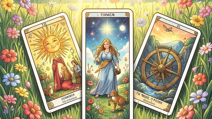 Сядьте в тихом месте, держите в руках колоду, закройте глаза и представьте себе яркое летнее солнце. Выберите три карты, разместите их перед собой и позвольте образам «говорить». Запишите свои ощущения — это поможет углубить интерпретацию.