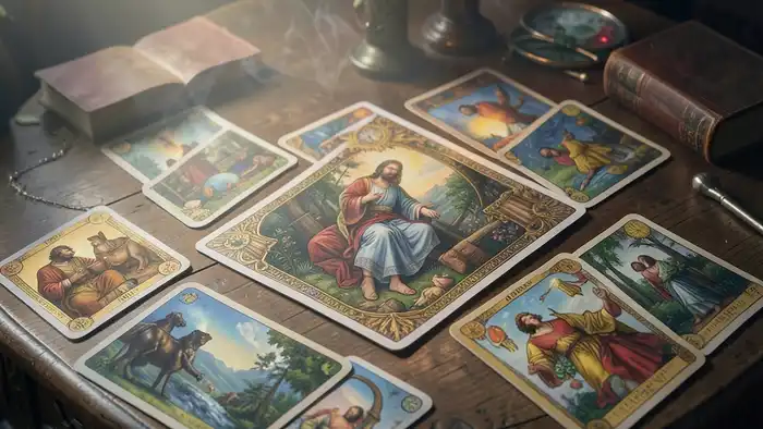 Пример: клиент вытянул Дьявола, Солнце и Паж Пентаклей. Дьявол указывает на привязанность к материальному, Солнце обещает освобождение, а Паж Пентаклей советует практический шаг – отдать ненужные вещи.